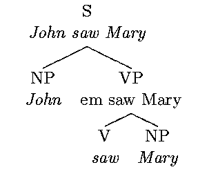 \branch{2}{S\\{\em John saw Mary}}